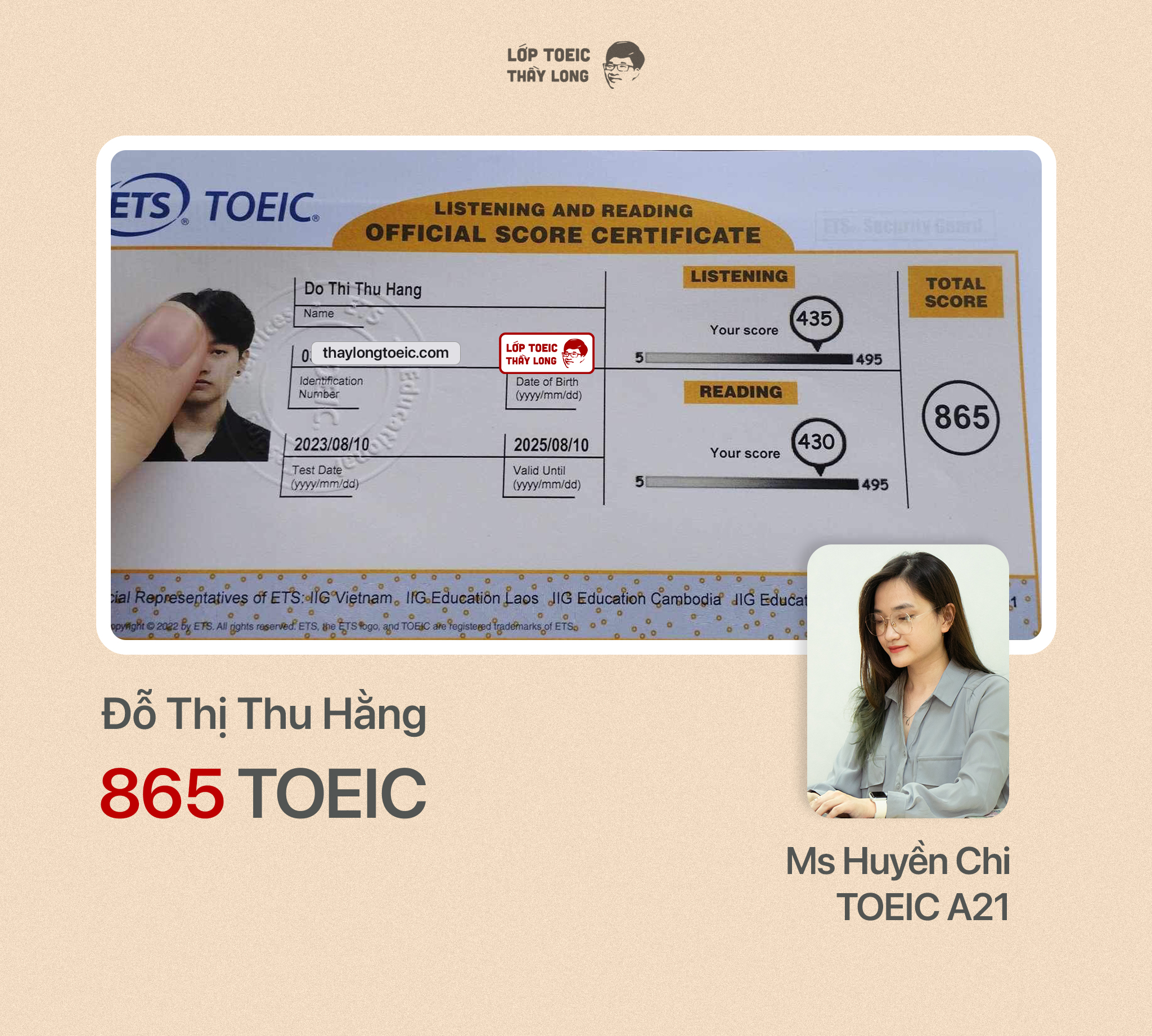 Đỗ Thị Thu Hằng 865 TOEIC 10/08/2023 Ms Huyền Chi