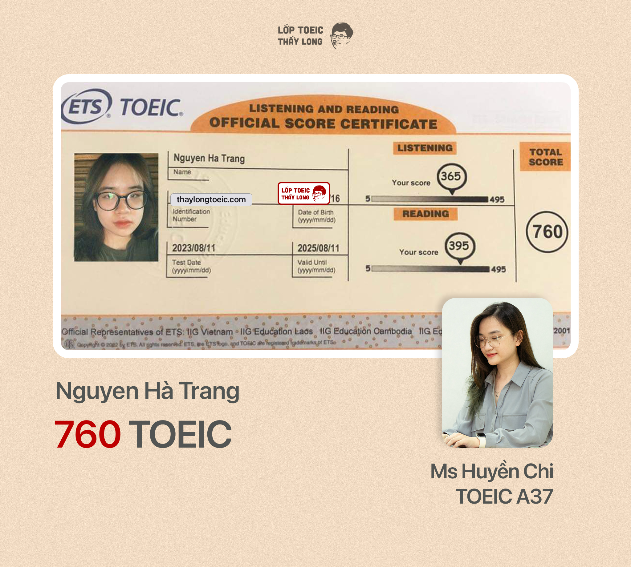 Nguyễn Hà Trang 760 TOEIC 11/08/2023 Ms Huyền Chi