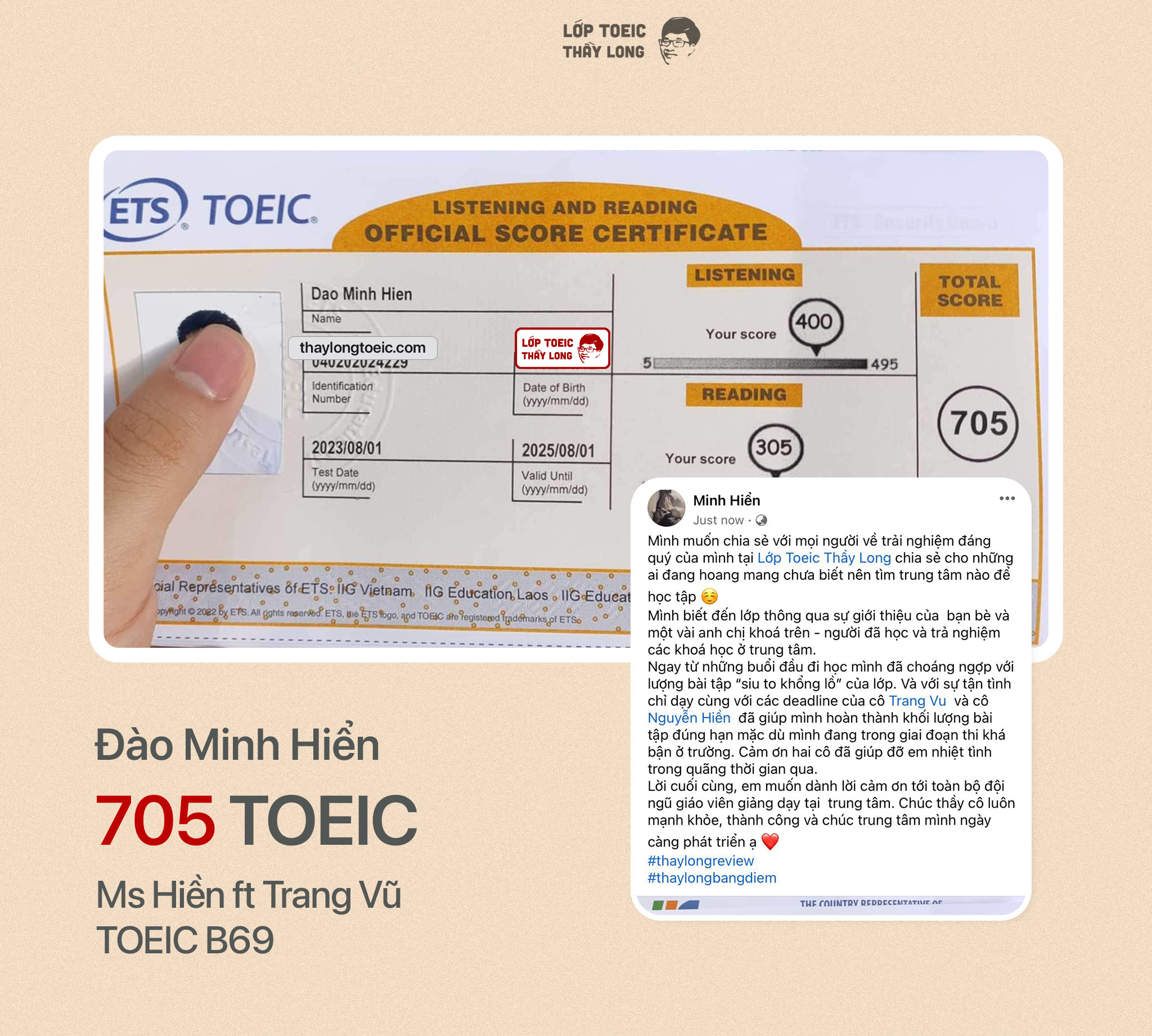 Đào Minh Hiền 705 TOEIC 01/08/2023 Ms Hiền ft Ms Trang Vũ B69
