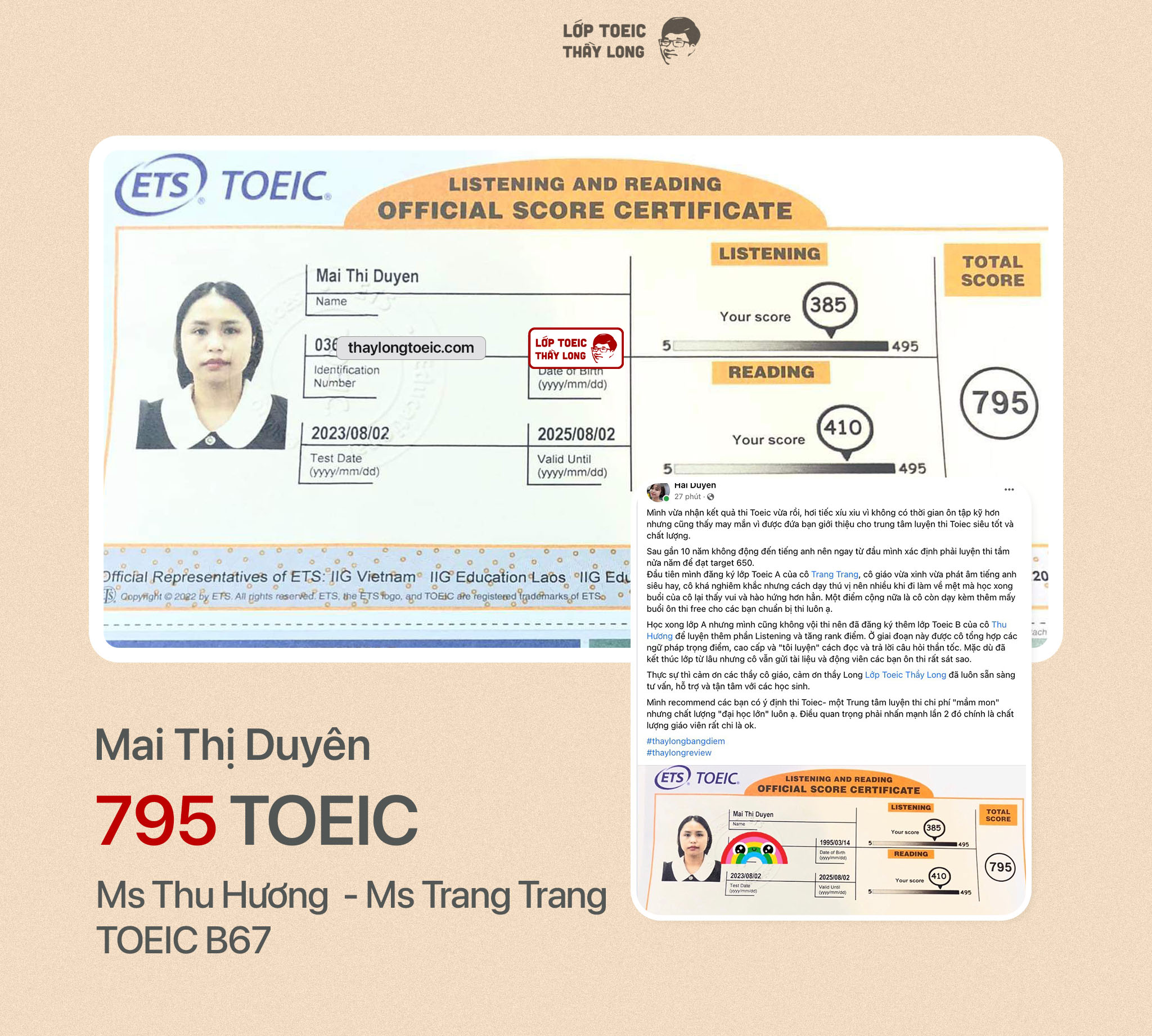 Mai Thị Duyên 795 TOEIC 02/08/2023 Ms Thu Hương ft Ms Trang Trang B67