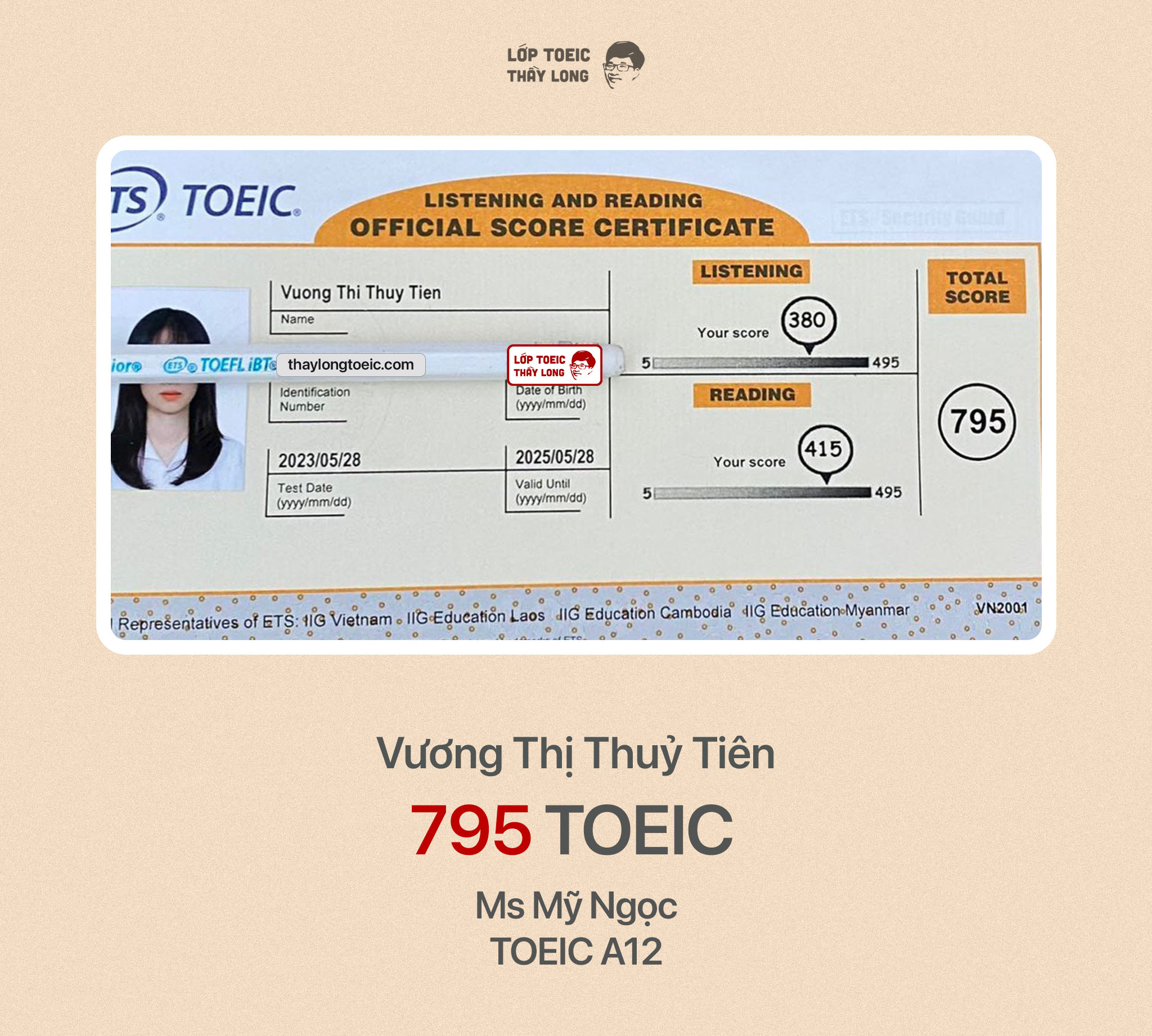 Vương Thị Thuỷ Tiên 795 TOEIC 28/05/2023 Ms Mỹ Ngọc A12