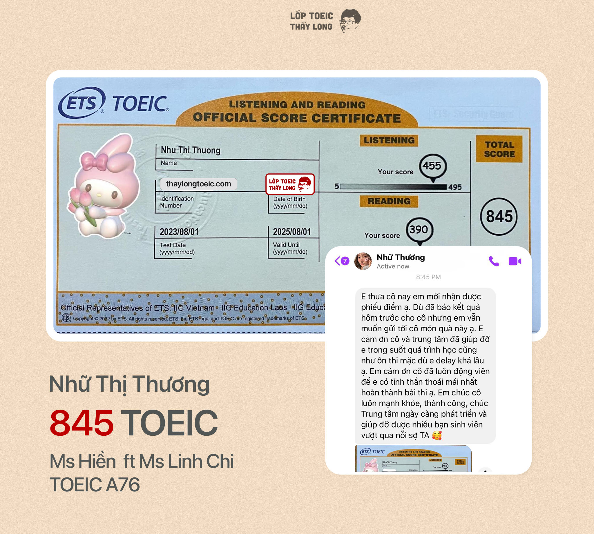 Nhữ Thị Thương 845 TOEIC 01/08/2023 Ms Hiền ft Ms Linh Chi A76