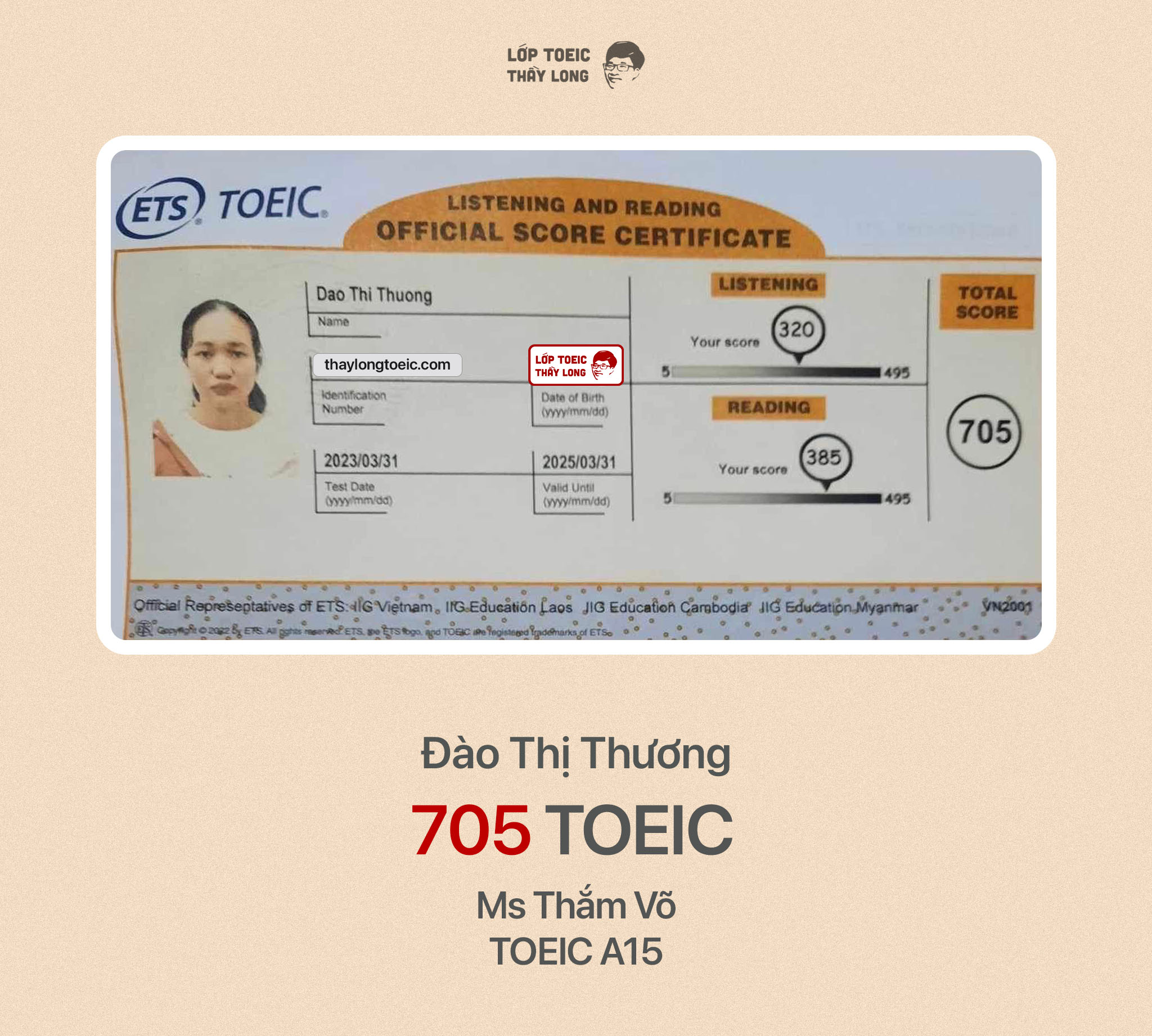 Đào Thị Thương 705 TOEIC 31/03/2023 Ms Thắm Võ A15
