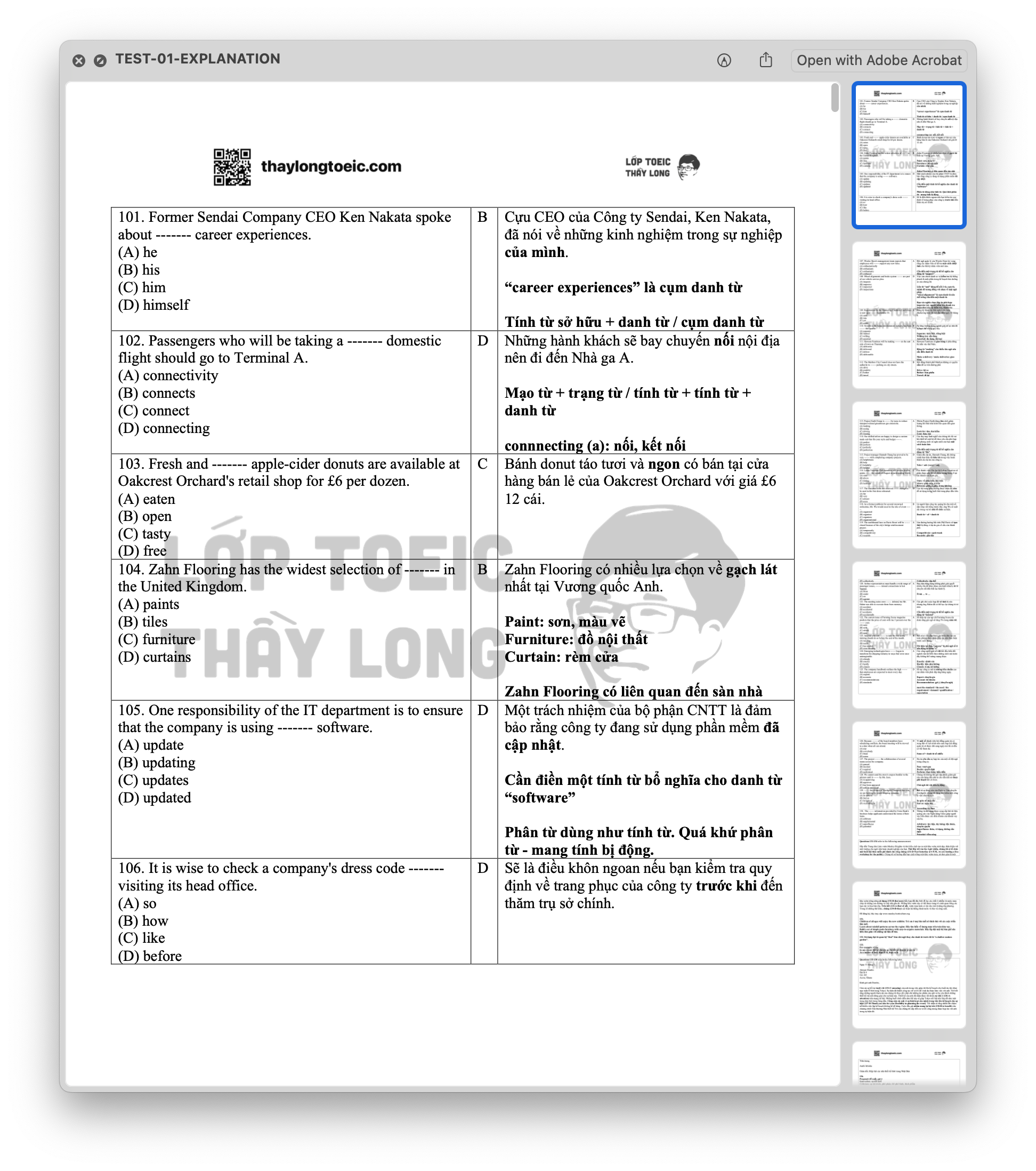 Ngoài ra trên website của Lớp TOEIC thầy Long cũng có sẵn những phần luyện tập cho từng Part kèm lời giải và đáp án chi tiết. Mọi người cùng học qua nhé