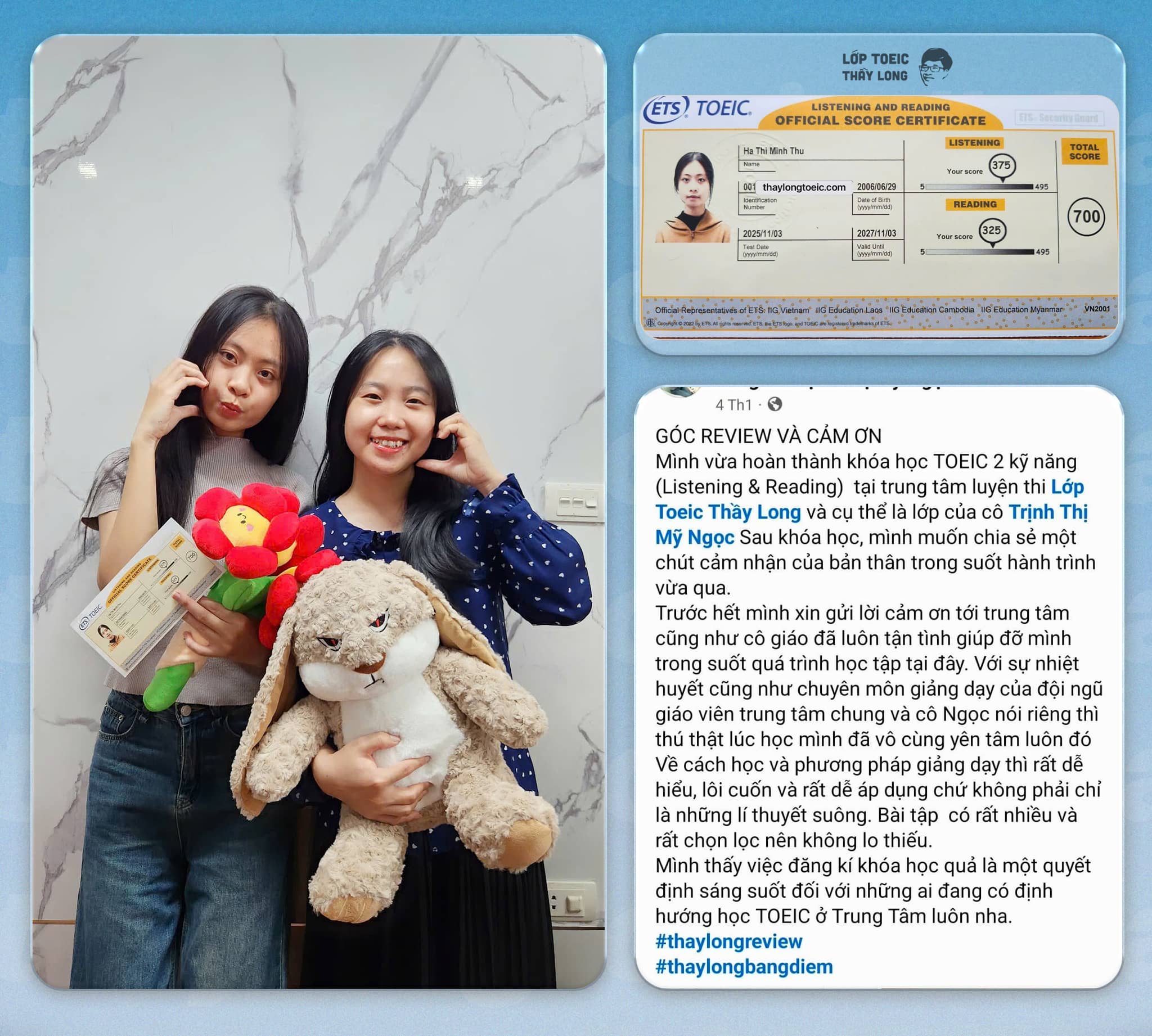 Với các bạn 700+ nếu dự định trong lương lai không học Speaking&Writing thì các em có thể chọn nhận lì xì thêm 200.000 nhé