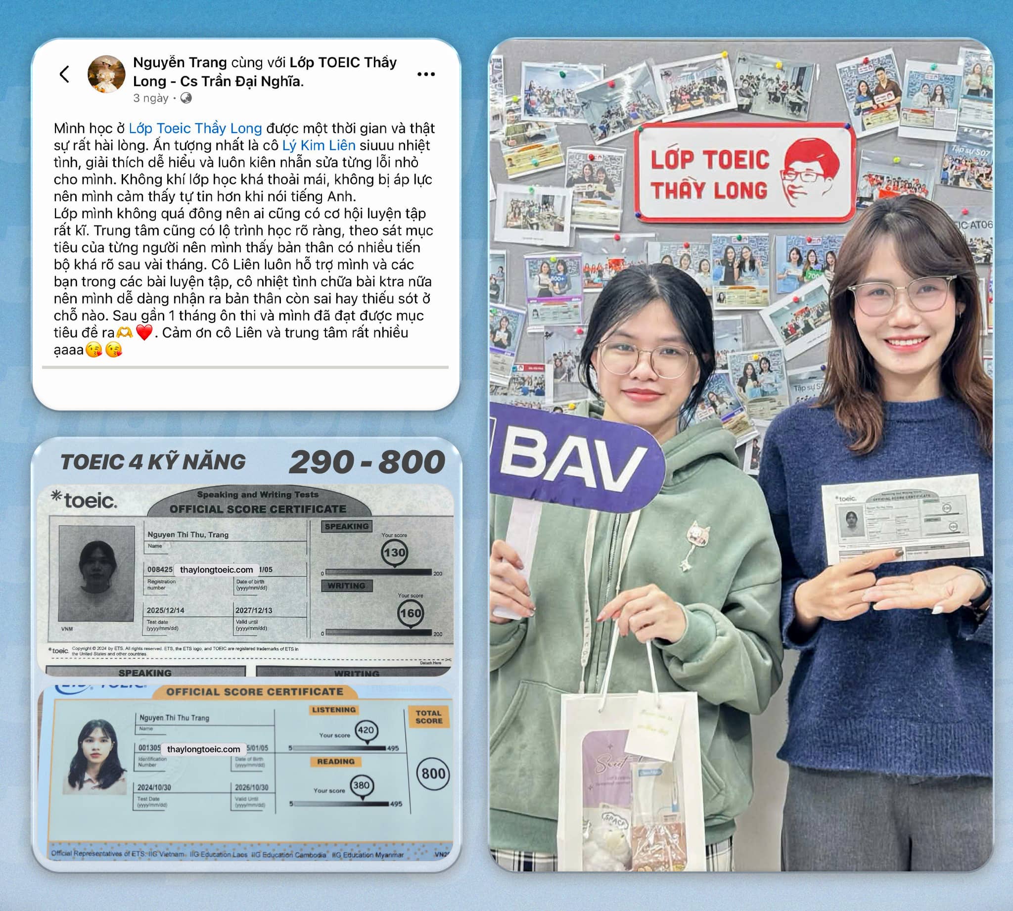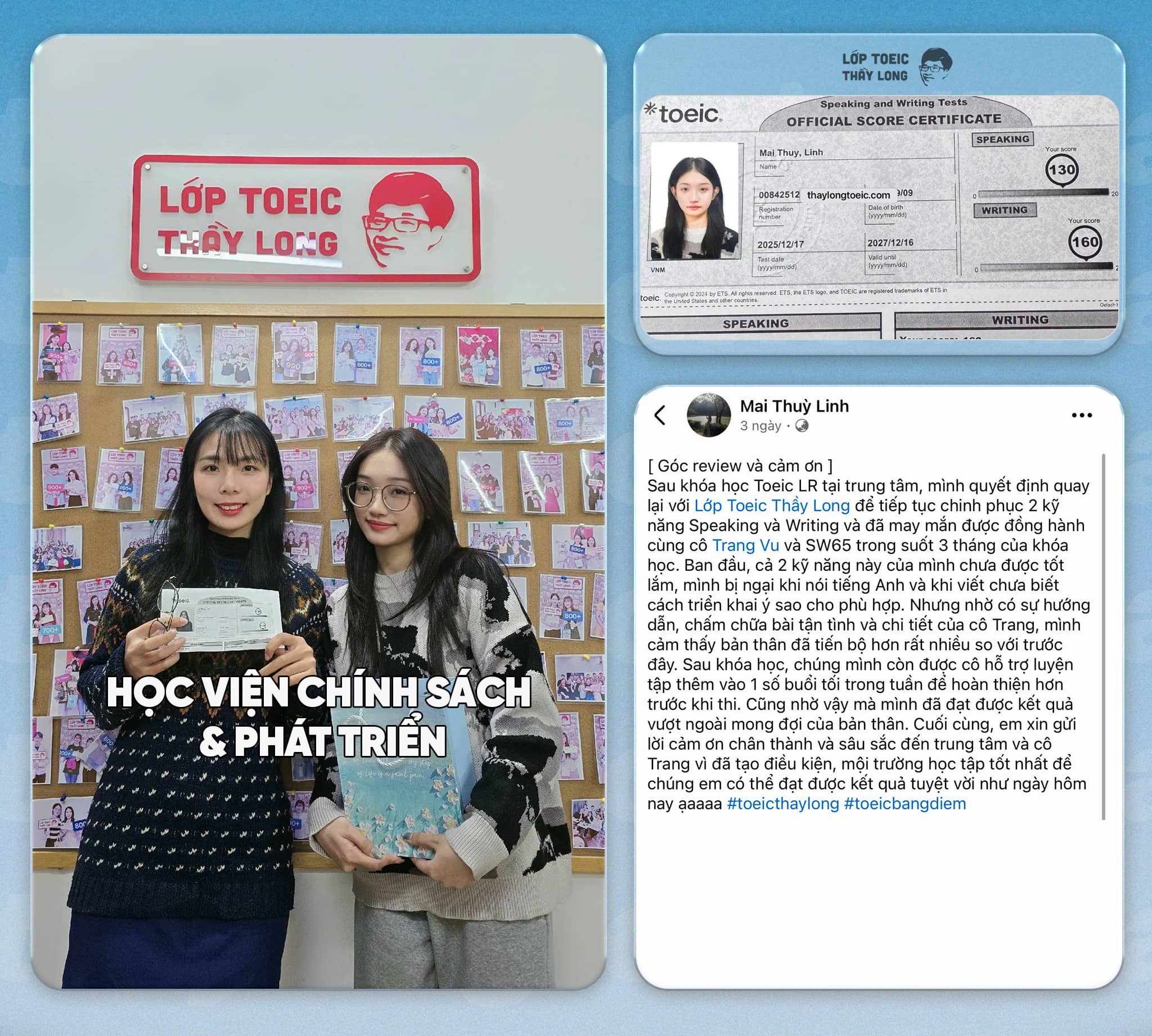 Điểm khác biệt : Không giống như các trung tâm , lớp Toeic Thầy Long tối ưu hóa từng kỹ năng trong bài thi và trau dồi song song khi học kỹ năng tiếp theo giúp cho học viên đạt kết quả tốt trong kỳ thi.