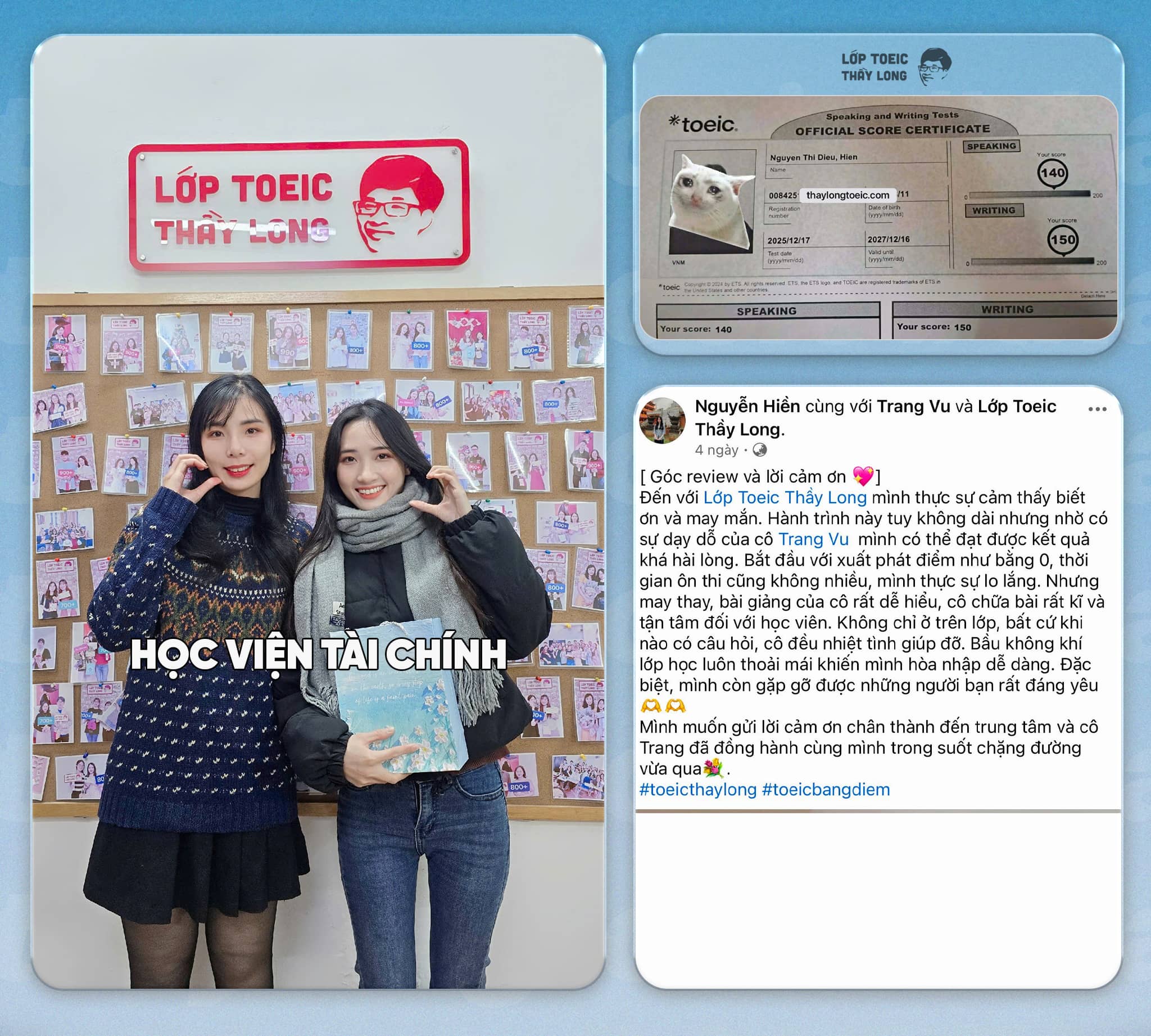 Sau khi có kết quả các em viết review về trải nghiệm học tập thì khi học lớp TOEIC SPEAKING &WRITING sẽ được giảm học phí mỗi bạn 800.000 (chỉ áp dụng khi viết review luôn khi có kết quả thi thật tại IIG).