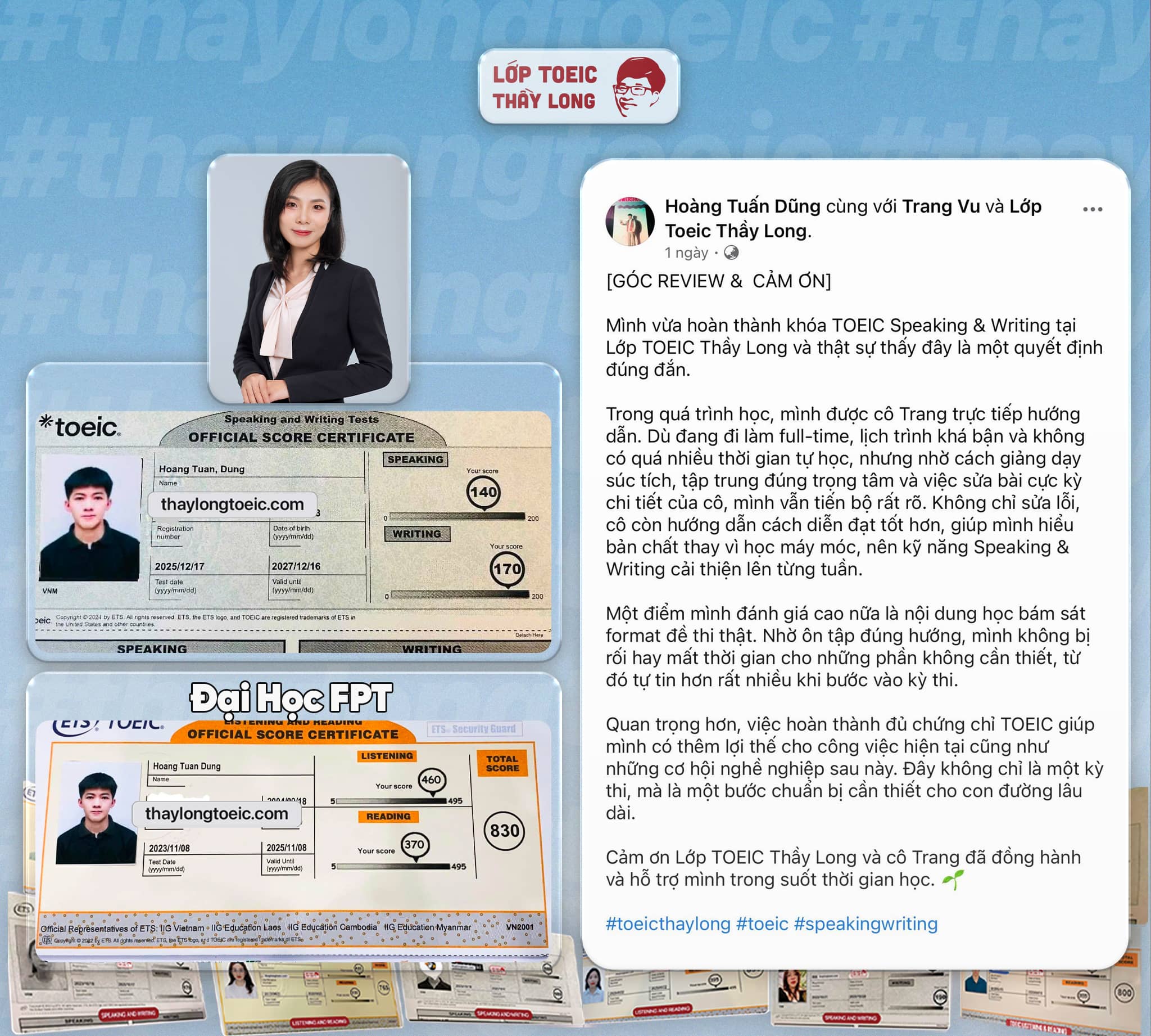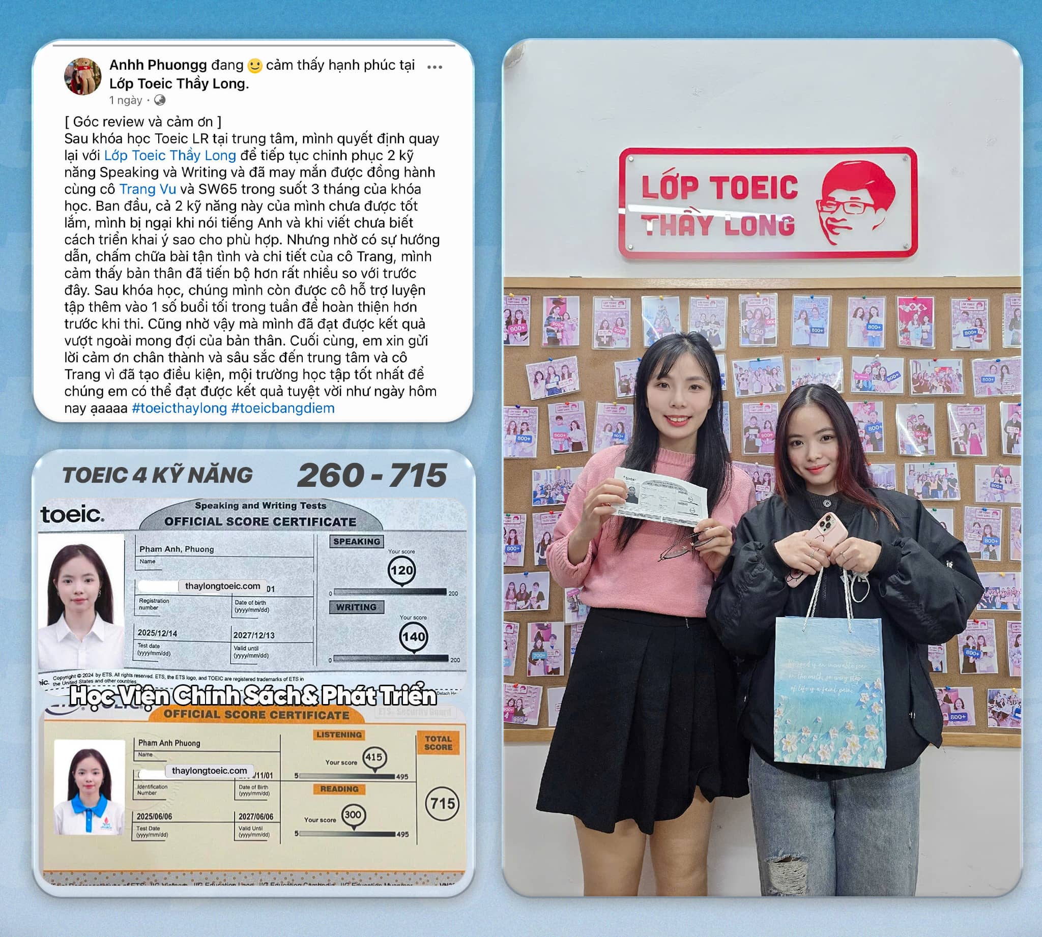 - Với các bạn đạt tối thiểu 120-120 mỗi kỹ năng nói viết sẽ được hỗ trợ 1.300.000 sau khi viết review.