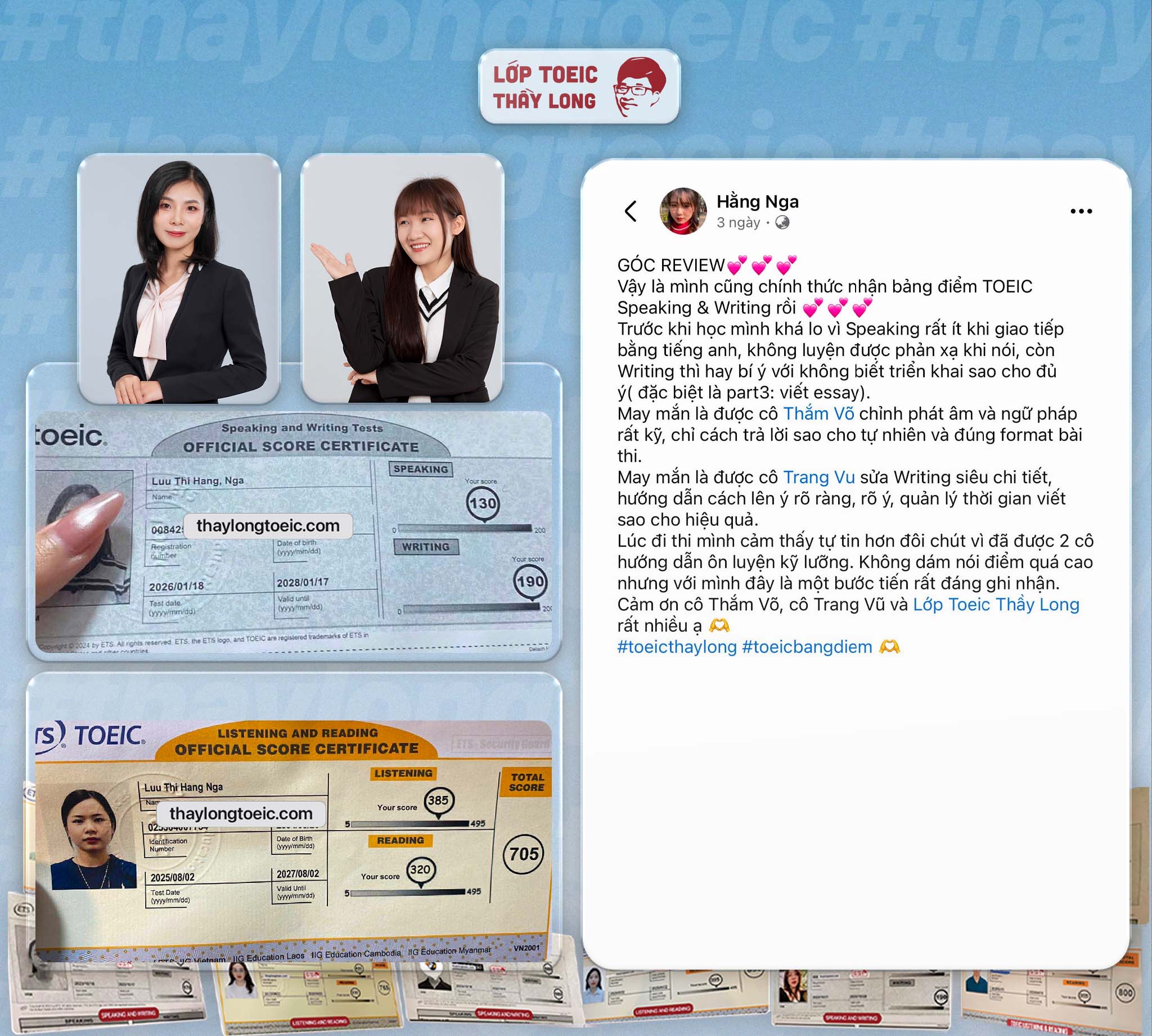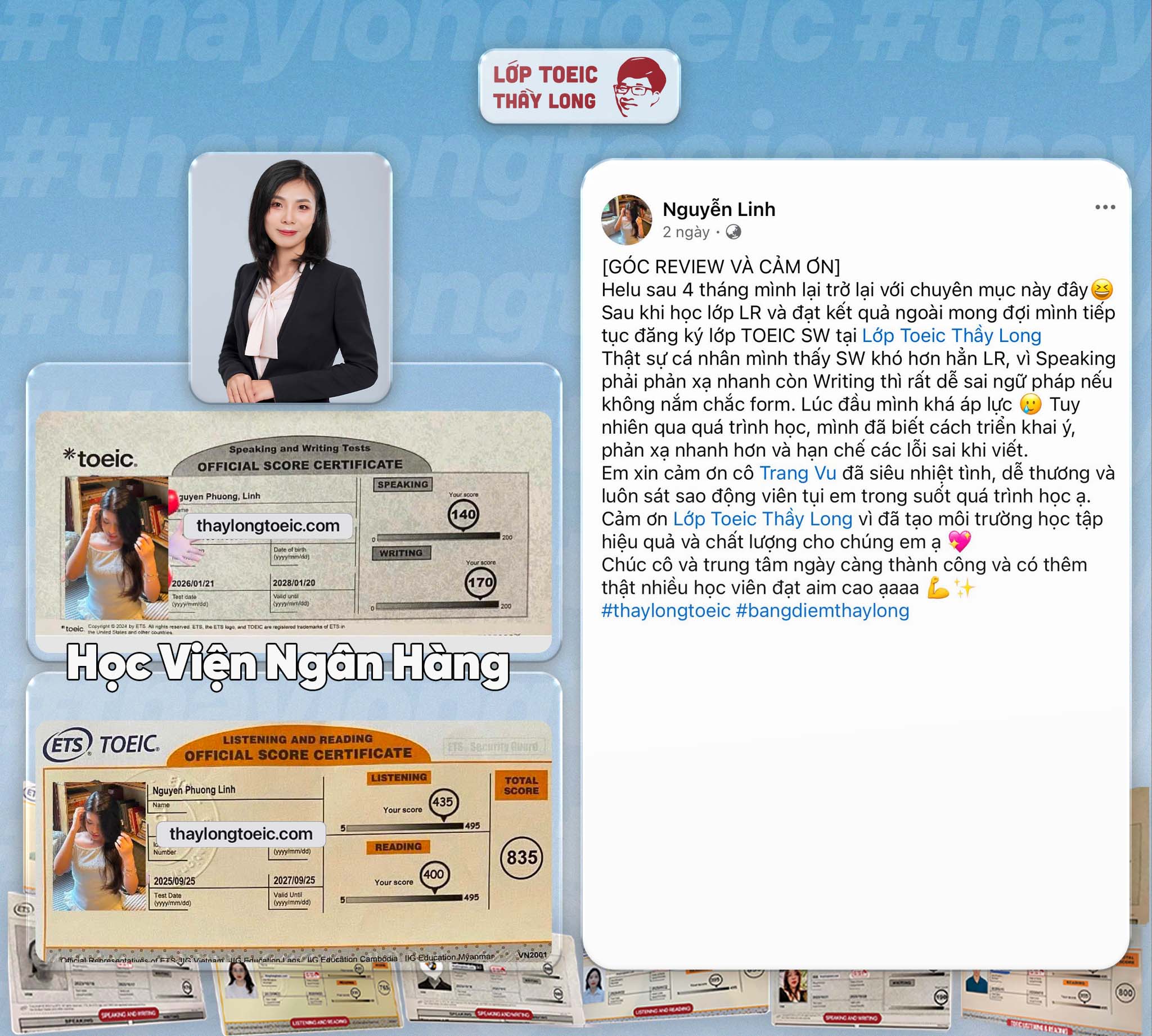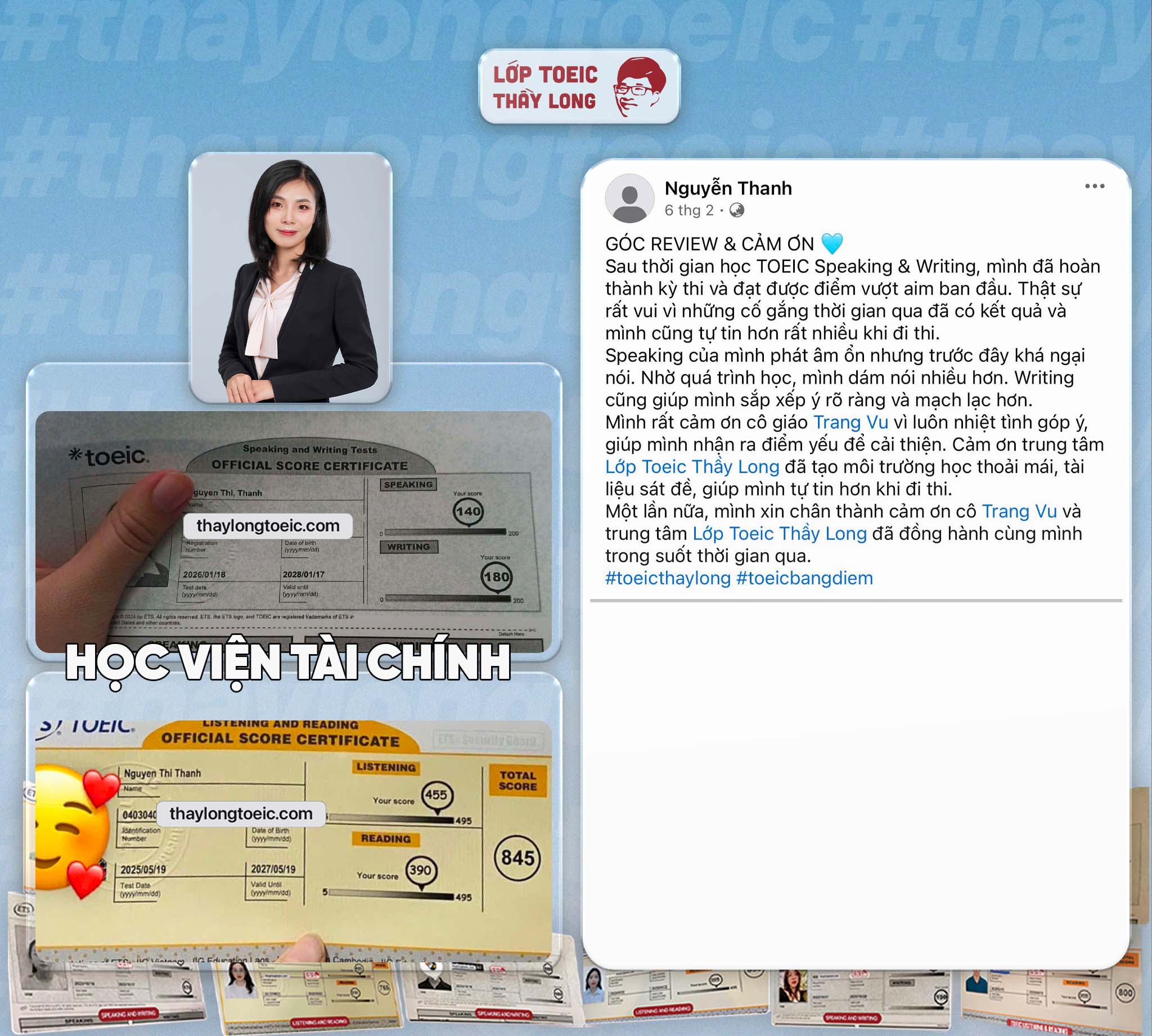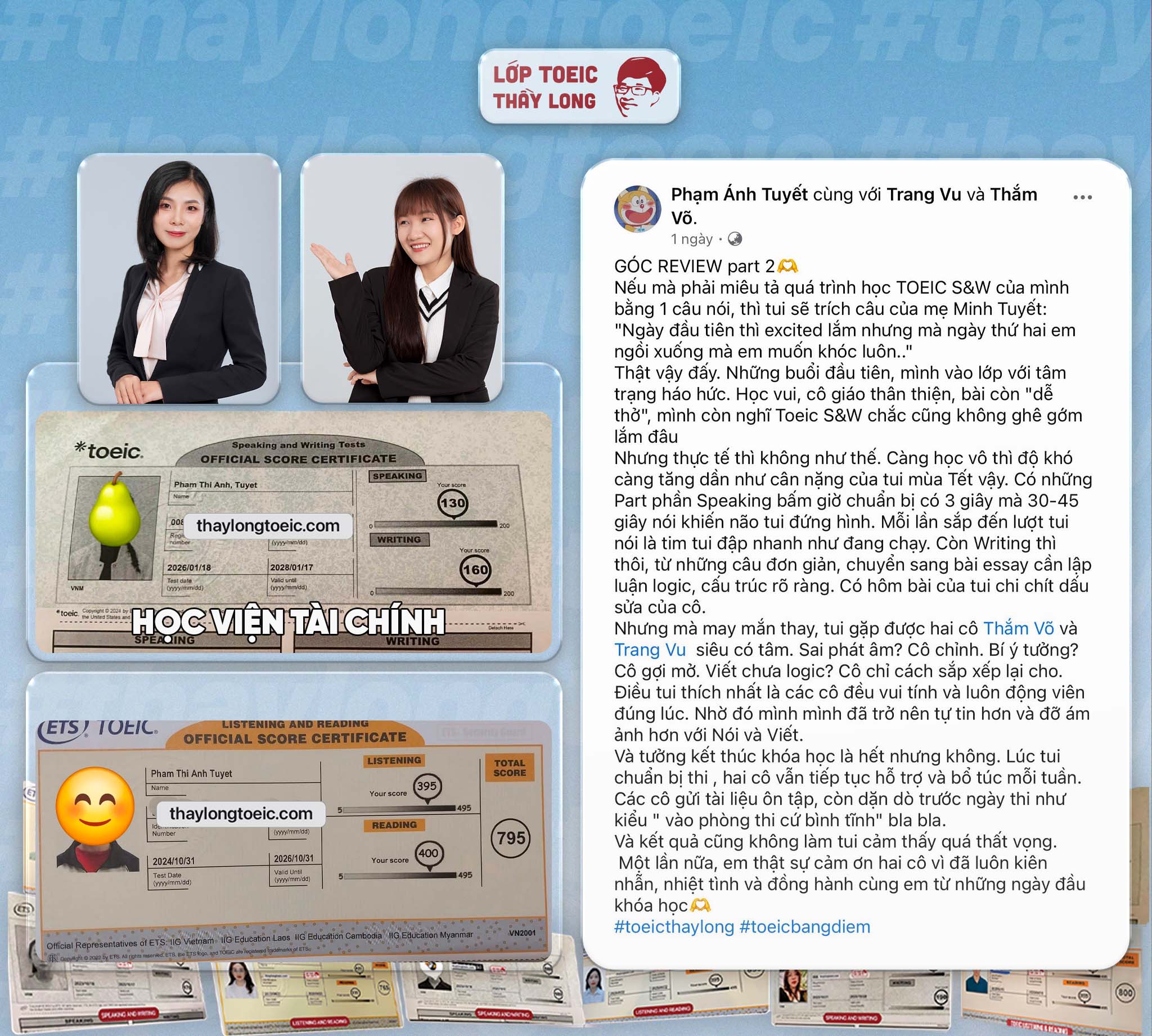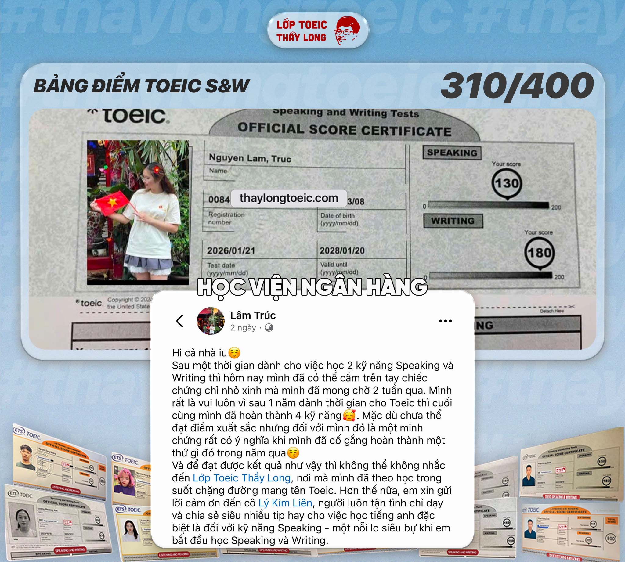 - Với các bạn đạt tối thiểu 120-120 mỗi kỹ năng nói viết sẽ được hỗ trợ 1.000.000 sau khi viết review.