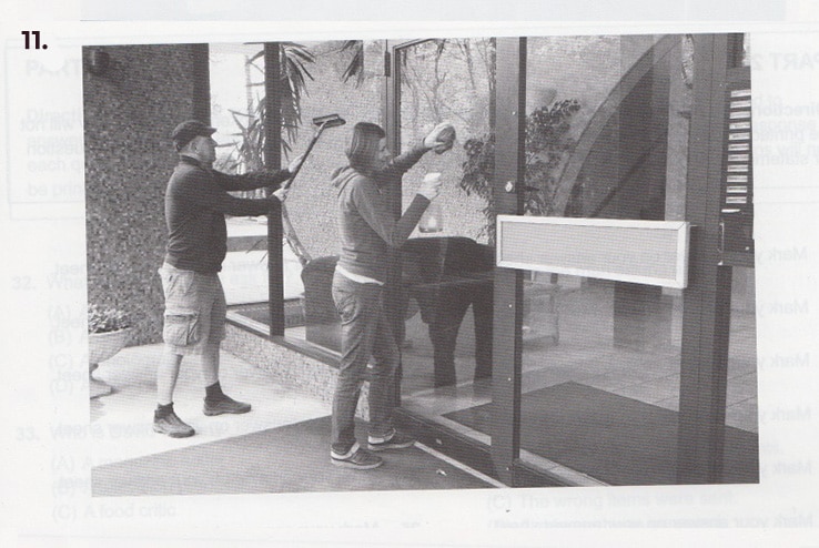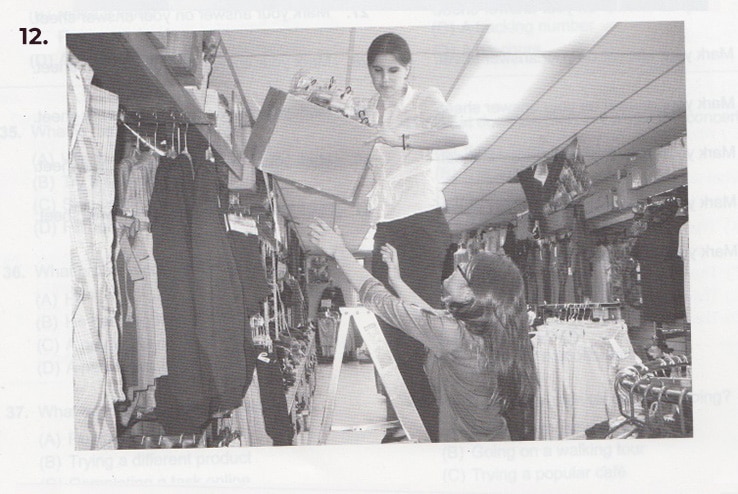 Bài thi bao gồm 12 câu hỏi tương ứng với 12 bức tranh được đánh số từ 1 đến 12. Mỗi bức tranh có 4 đáp án: A, B, C, D mô tả về nó. Nhiệm vụ của bạn là chọn mô tả nào hợp lý và đúng nhất.