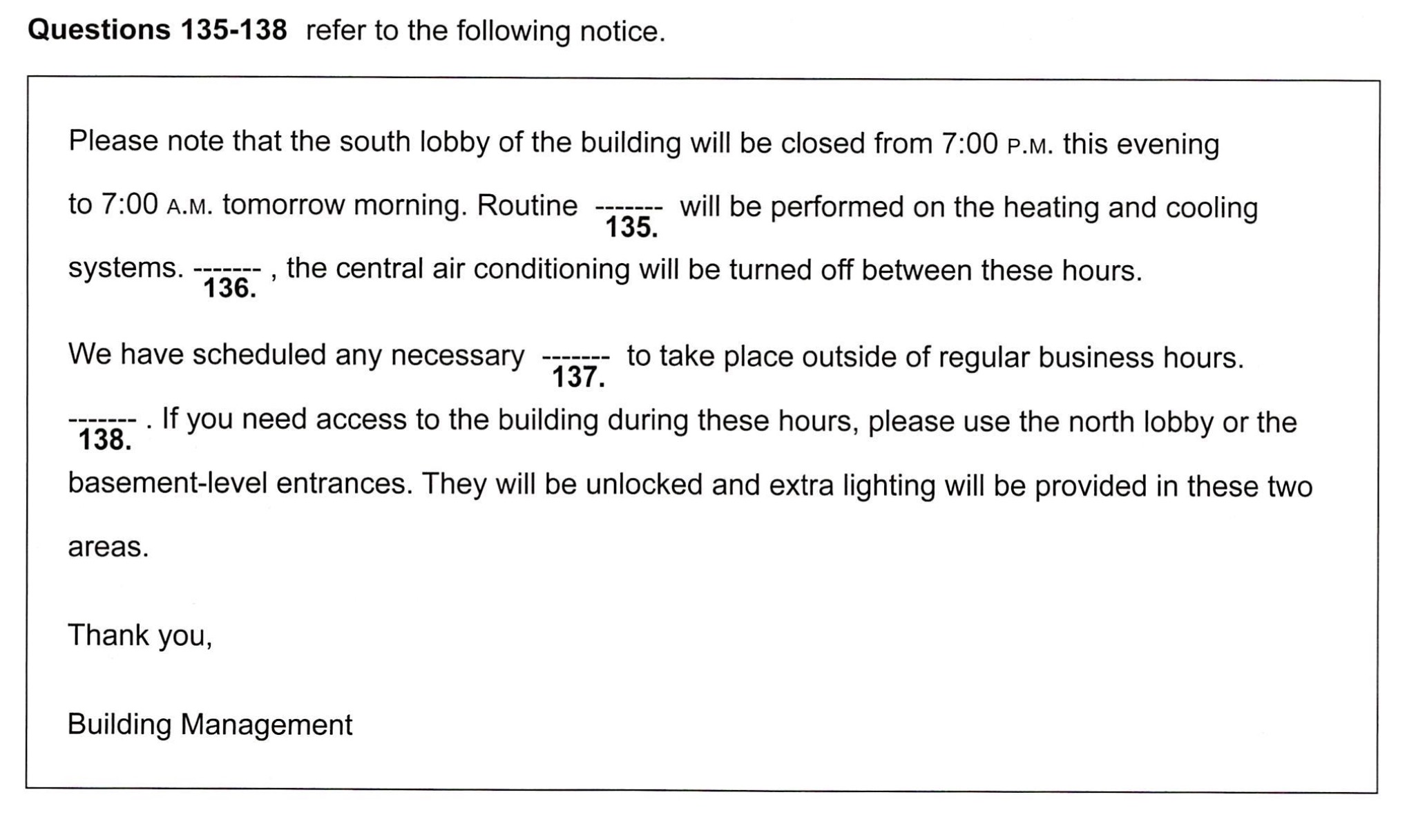 In the Reading test, you will read a variety of texts and answer several different types of reading comprehension questions. The entire Reading test will last /5 minutes. There are three parts, and directions are given for each part. You are encouraged to answer as many questions as possible within the time allowed.