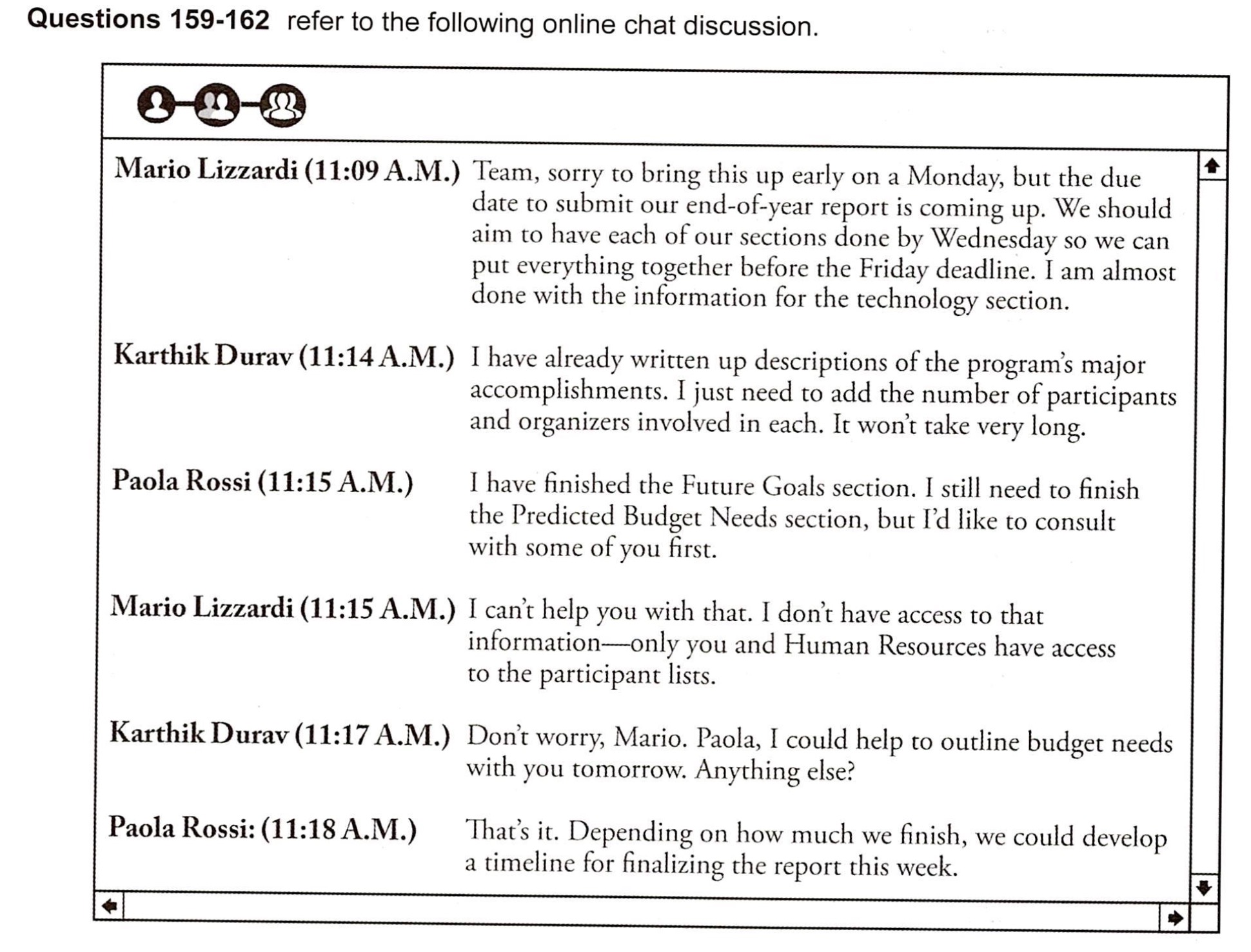 162. At 11:18 A.M., what does Ms. Rossi mostlikely mean when she writes, “That’s it”?