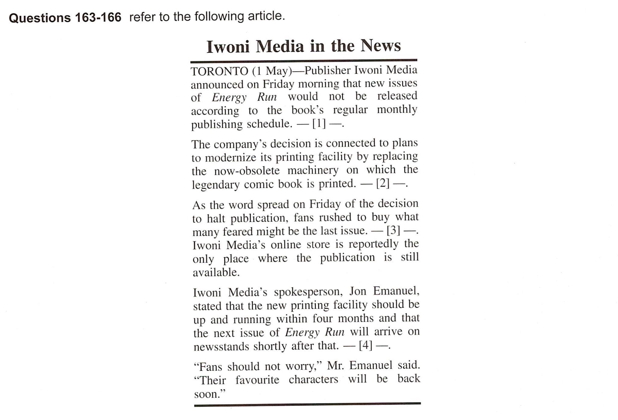 165. What did Mr. Emanuel announce?