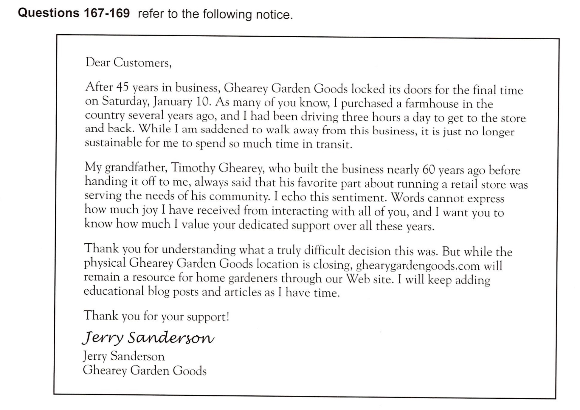 167. Why did Ghearey Garden Goods close?