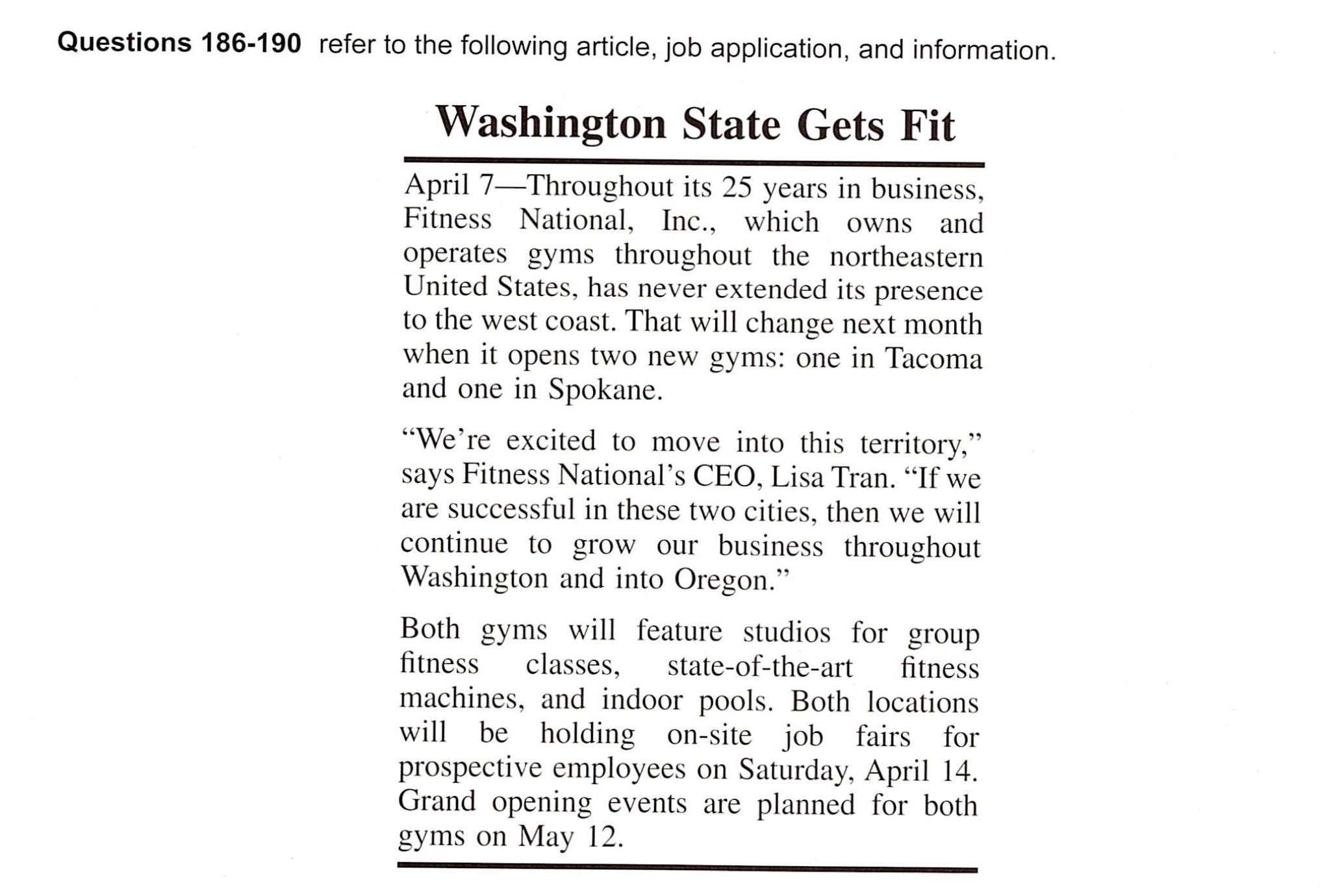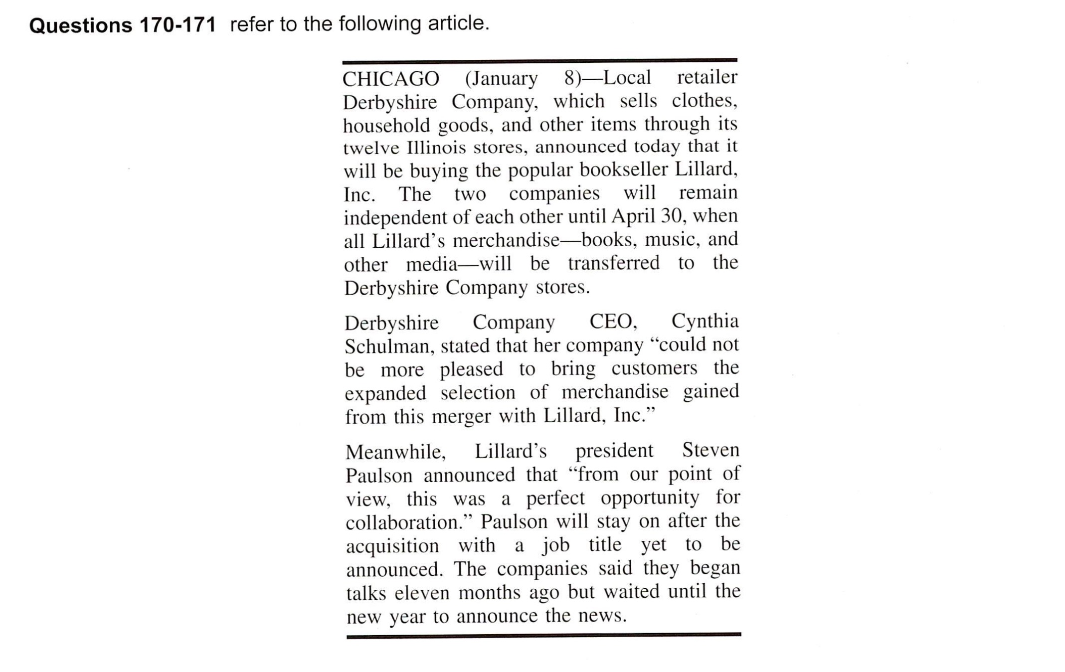 Directions: In this part you will read a selection of texts, such as magazine and newspaper articles, e-mails, and instant messages. Each text or set of texts is followed by several questions. Select the best answer for each question and mark the letter (A), (B), (C), or (D) on your answer sheet.