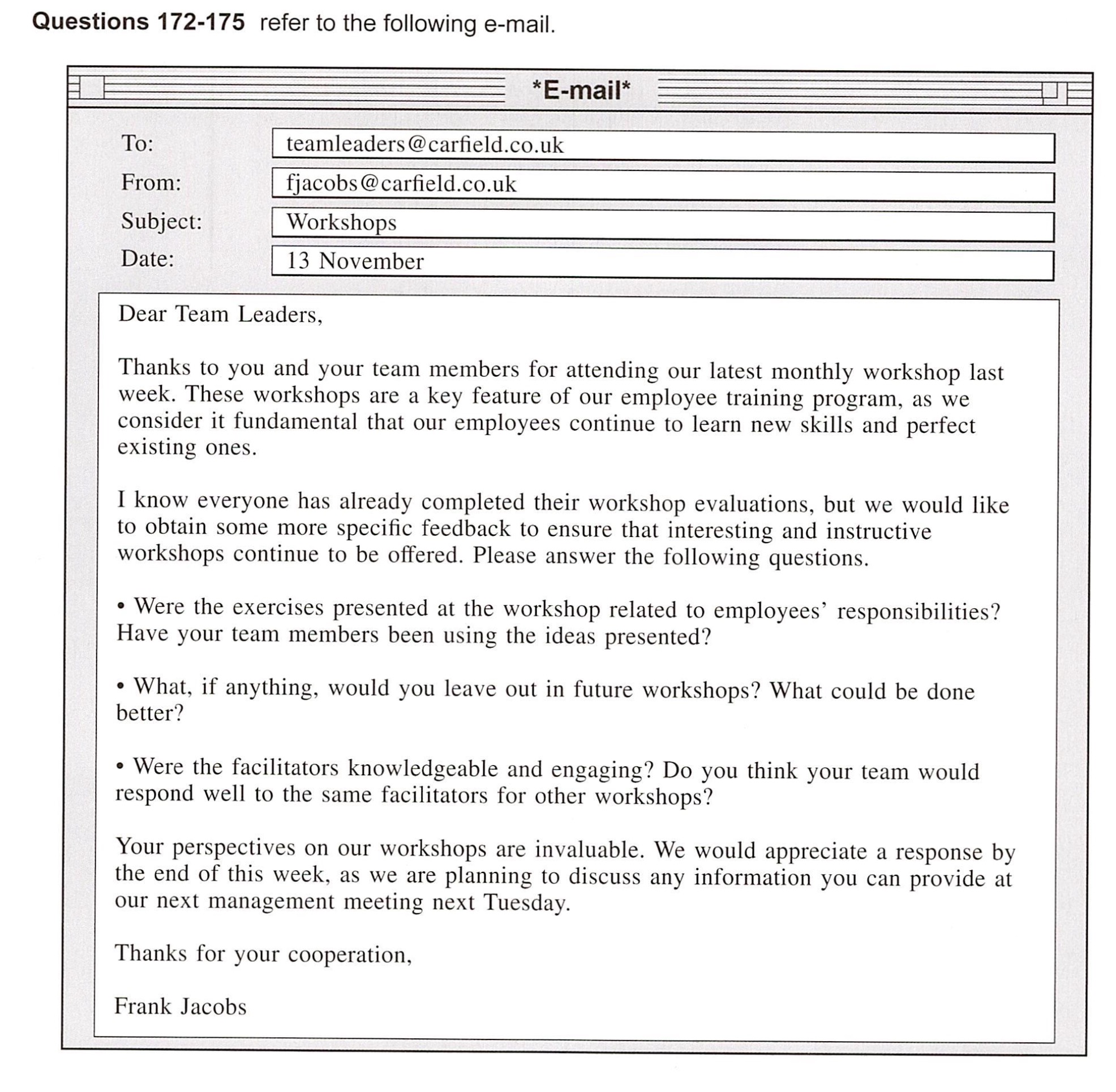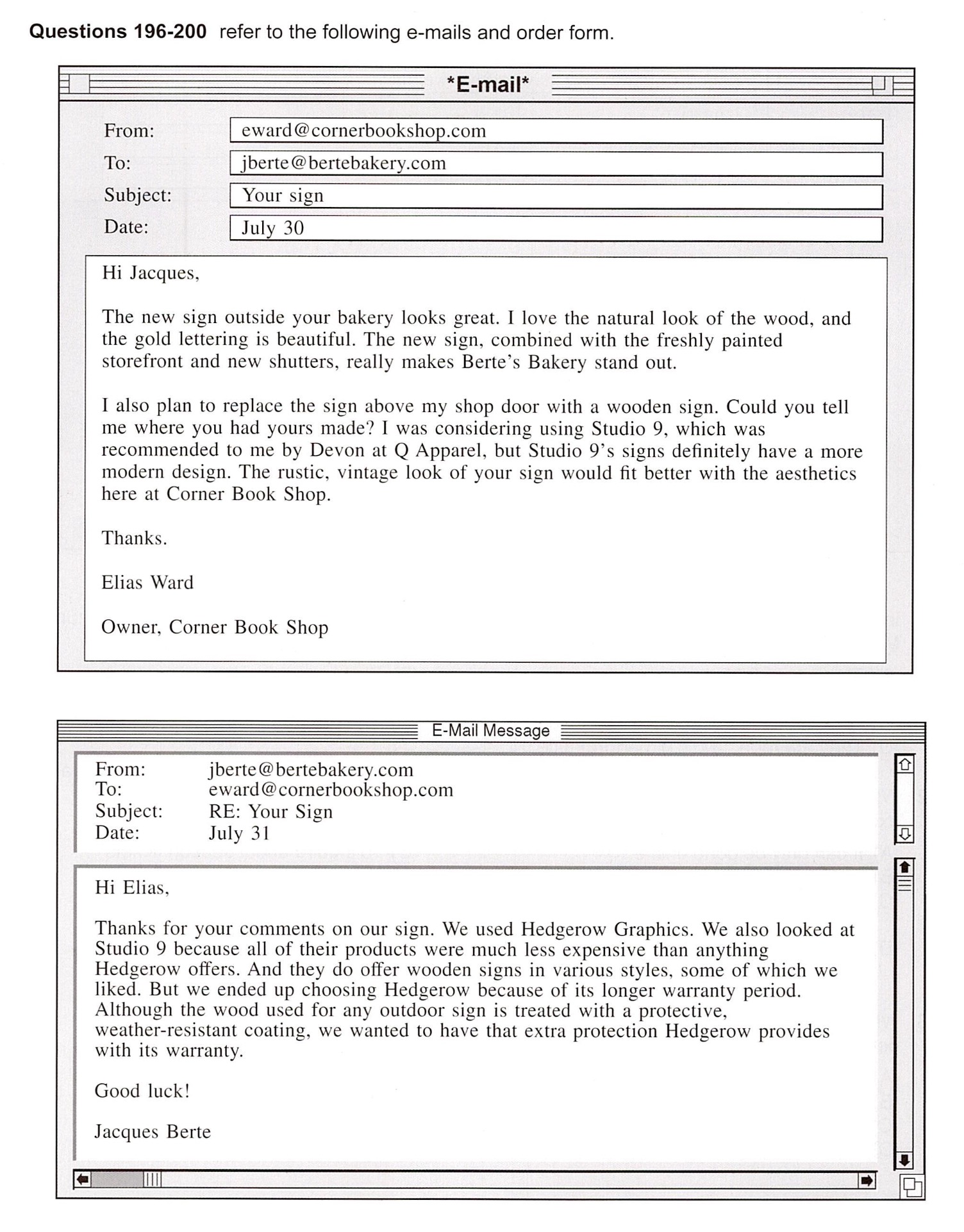 195. What is the purpose of the second e-mail?