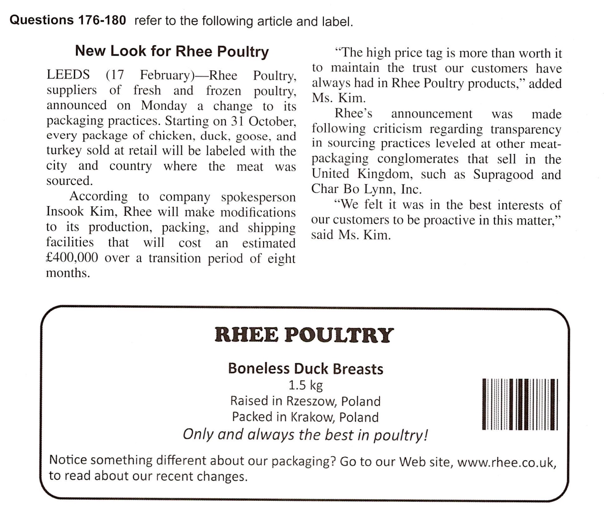 176. According to the article, why did Rhee Poultry make a change?